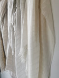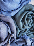 Airy, sheer quality adds to the dimensionality of this beautiful sustainably crafted cashmere shawl. The pattern is a solid color, woven in a 'shadow' pattern, and this season we have done some new, subtle variations that are gorgeous!